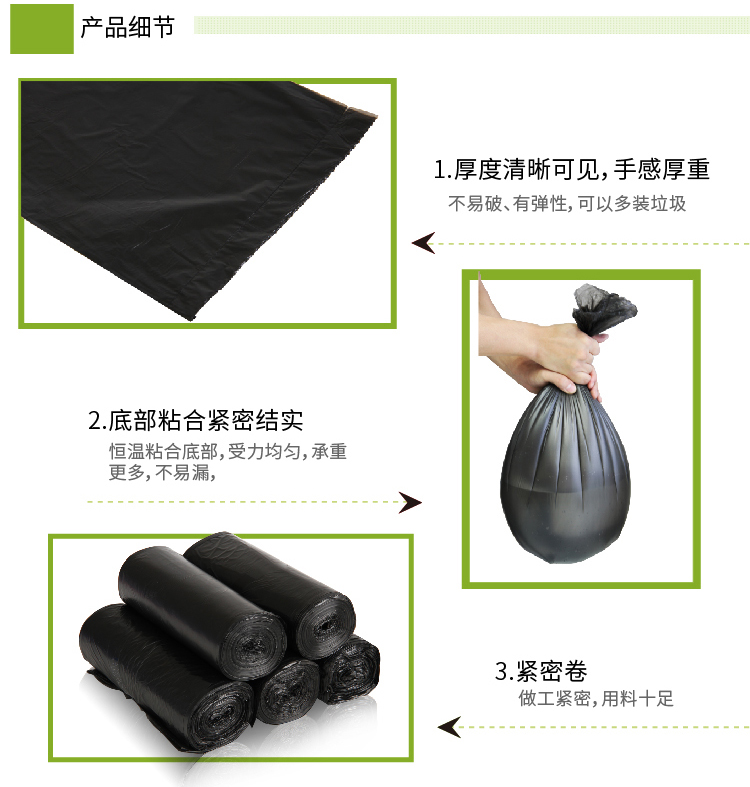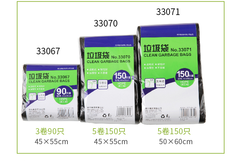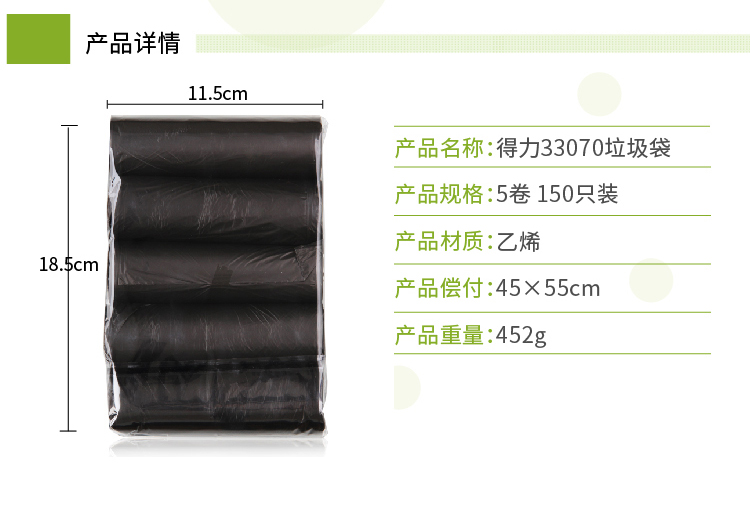 商品名称:得力(deli)5卷(150只)办公生活垃圾袋45*55cm 垃圾分类 办公用品 黑色33070