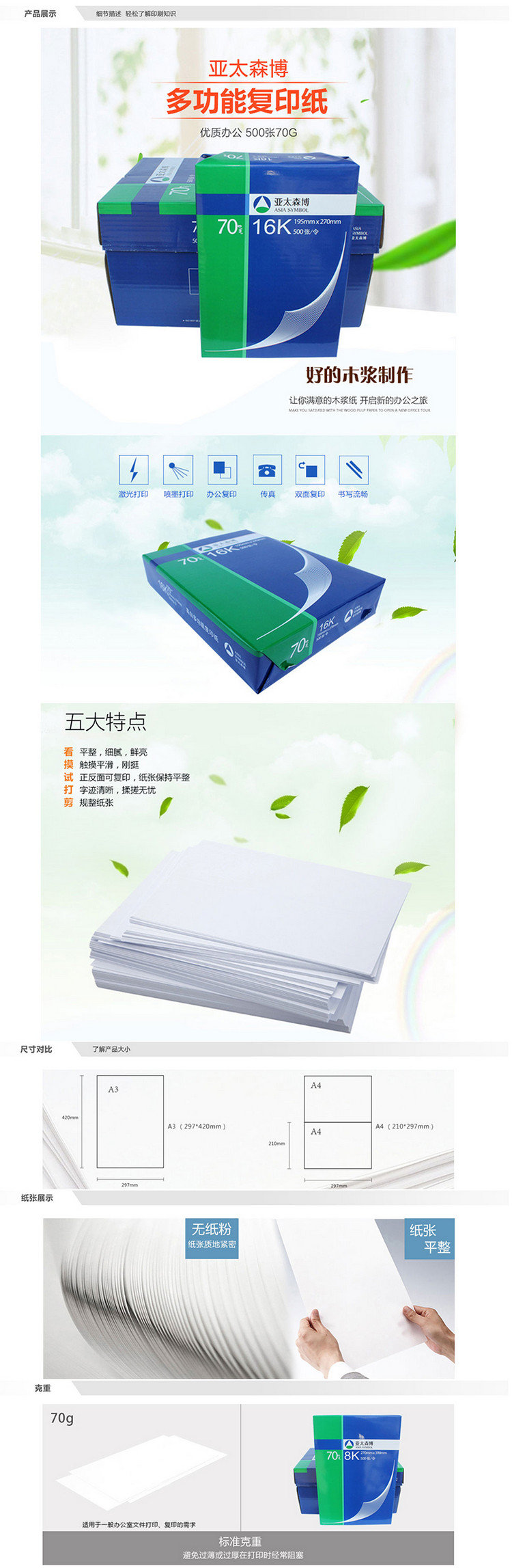 商品名称:亚太森博(Asia Symbol)BK深蓝系列静电 复印纸 B4 70g 4包/箱