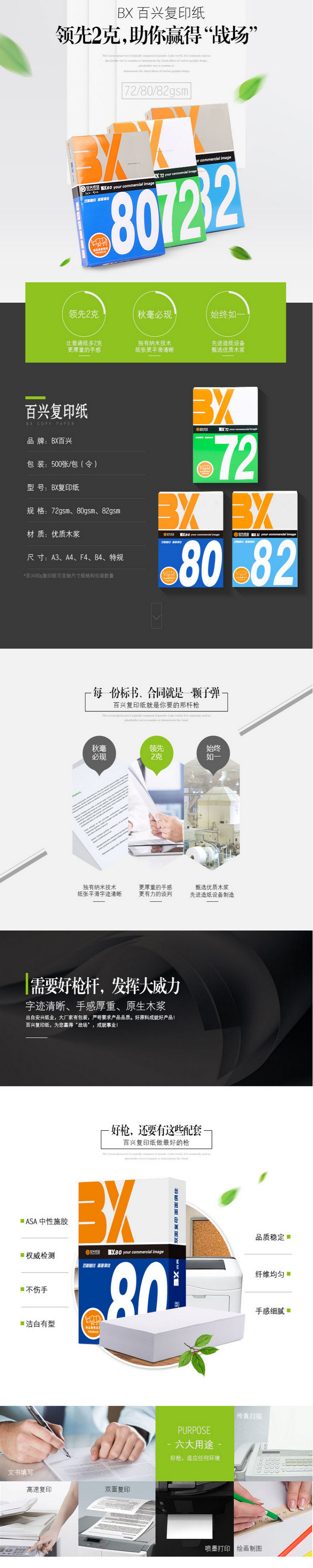 商品名称:百兴(BX)B4 70G 复印纸 500张/包 单包装
