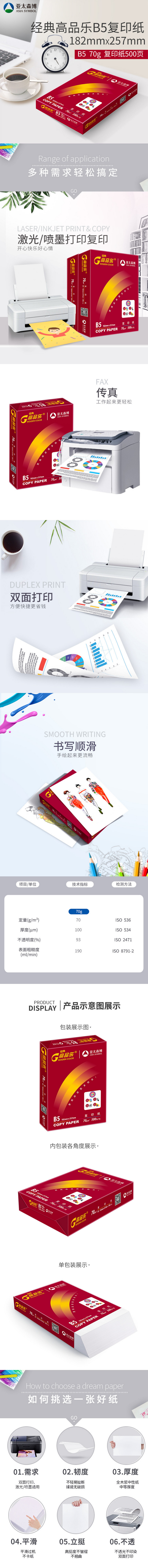 商品名称:高品乐 B5 70g 复印纸 500张/包 8包/箱 整箱价