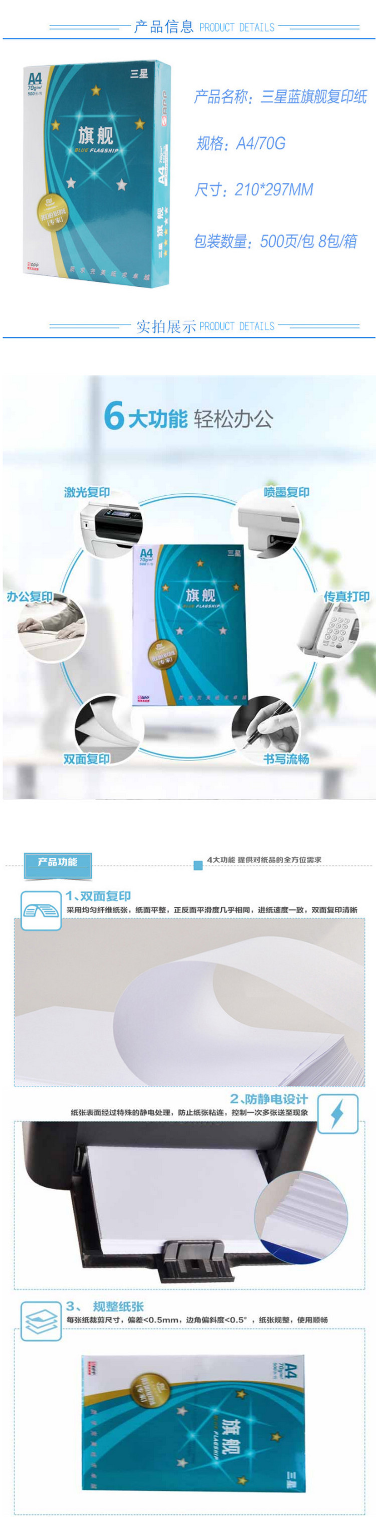 商品名称:旗舰 B5 70g 复印纸 500页/包 8包/箱 整箱价