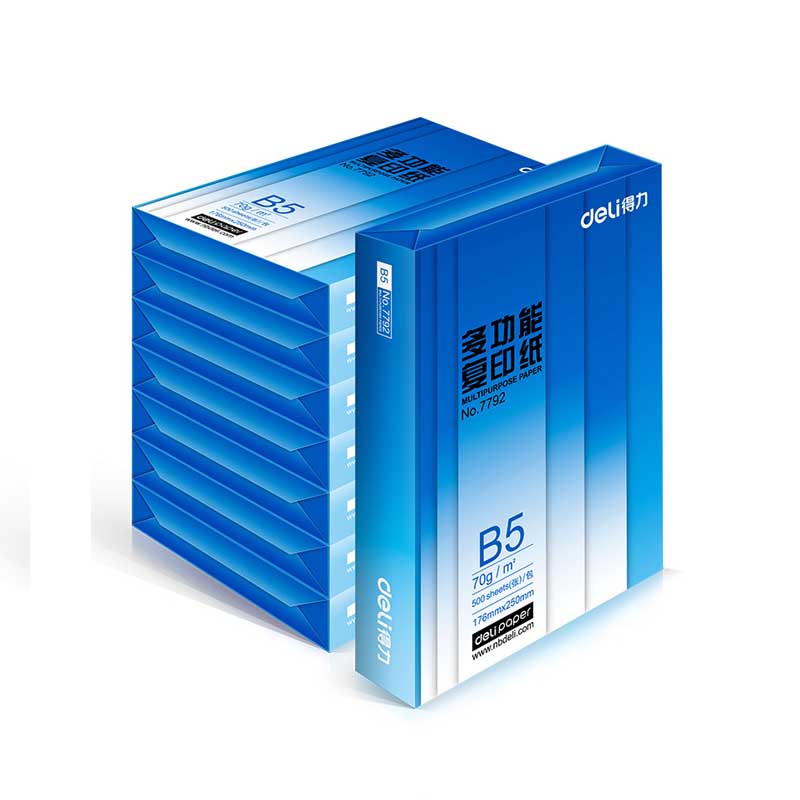 商品名称:得力(deli)7793 莱茵河纯木浆多功能复印纸 B5 70g 8包/箱 单箱