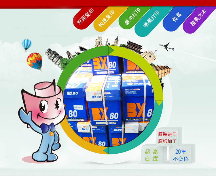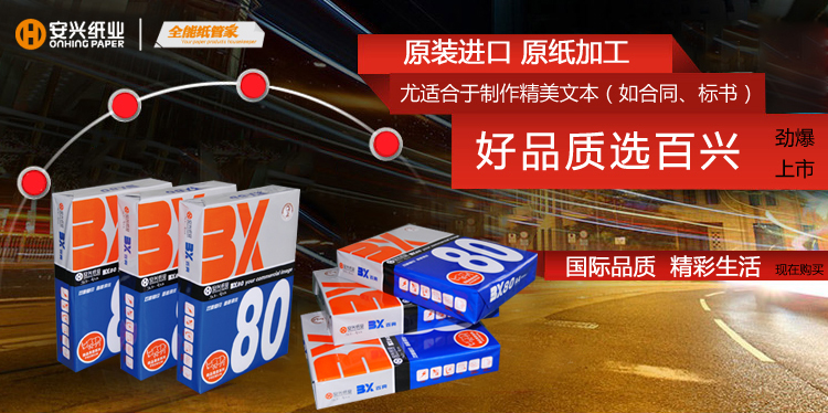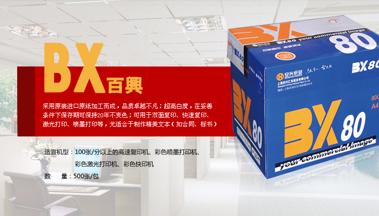 商品名称:百兴(BX)B5 80G 复印纸 500张/包 10包/箱 单包价