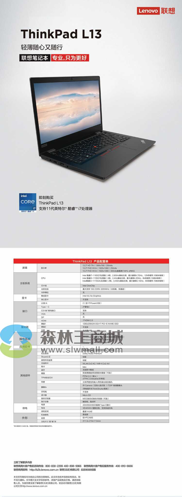 商品名称:联想ThinkPad L13 商用笔记本/i7-1165G7/8G(DDR4 2400)/512G固态硬盘/13.3英寸/集成显卡/win10/一年上门/人脸识别/含包鼠)