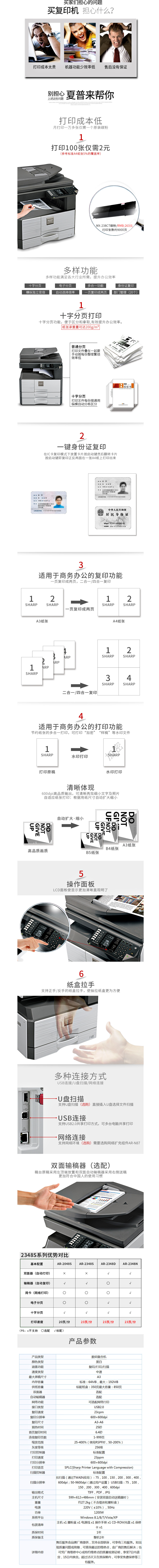 商品名称:夏普(SHARP) AR-2348S 复印机 A3黑白激光复印/打印/彩色扫描 主机+双面送稿器+纸盒