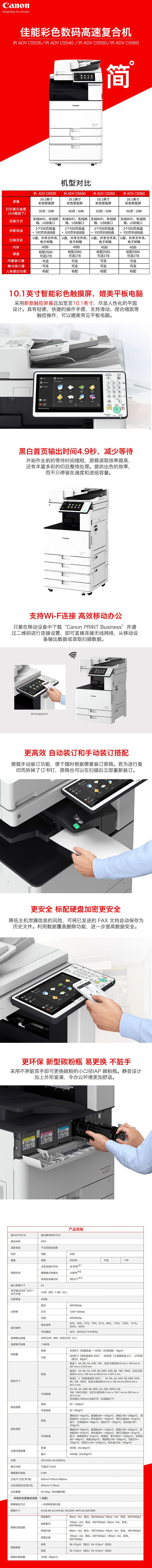 商品名称:佳能(Canon) IR-ADVC5540 复印机 A3幅面 (主机套装)