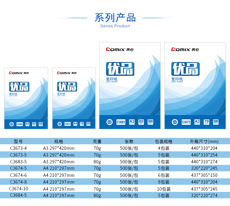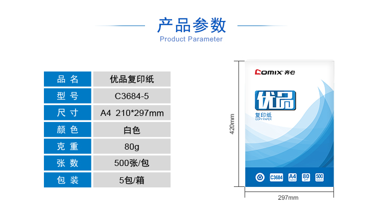 商品名称:齐心 C3684-5 优品复印纸 A4 80克 白