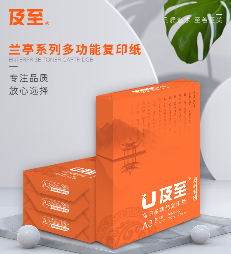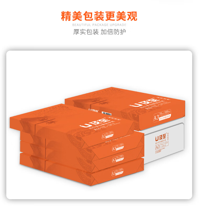 商品名称:及至 L1370-4 橙及至复印纸 A3 70g 500张/包*4包 单位:箱