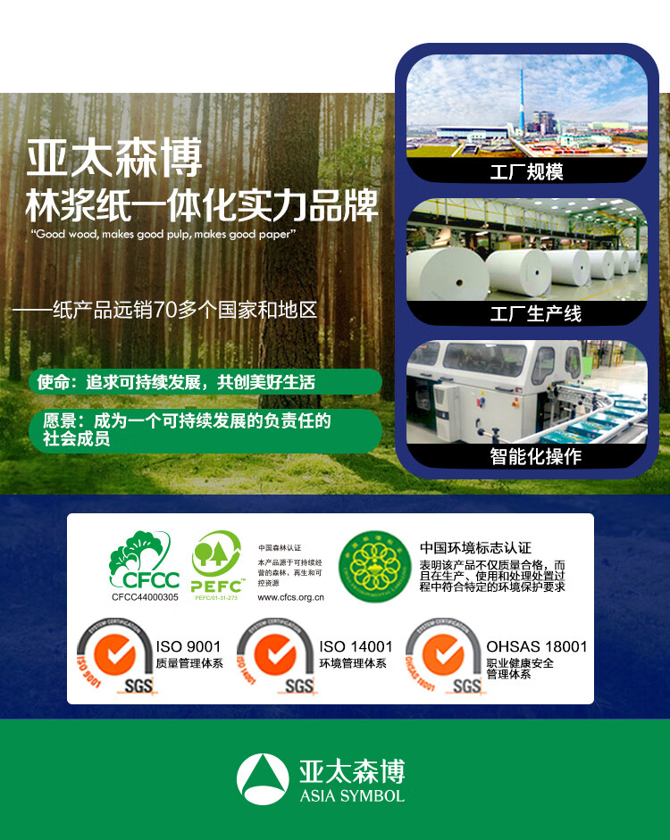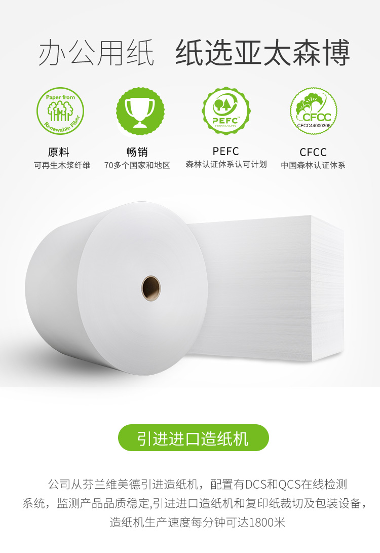 商品名称:亚太森博 蓝百旺 80g A3 复印纸 500张/包 5包/箱