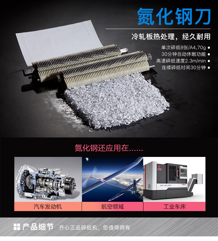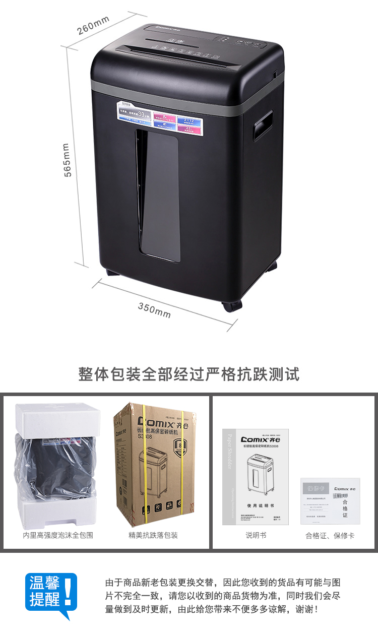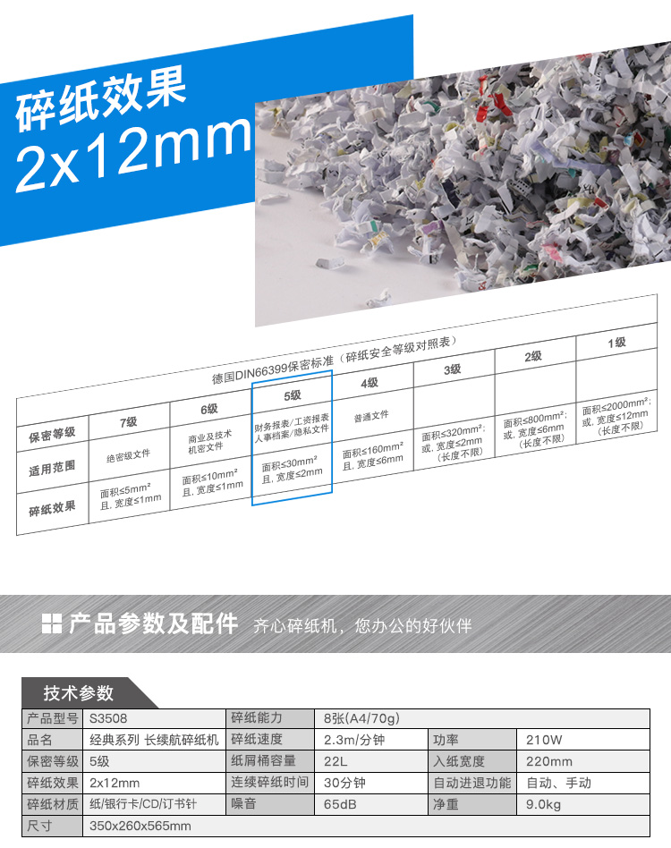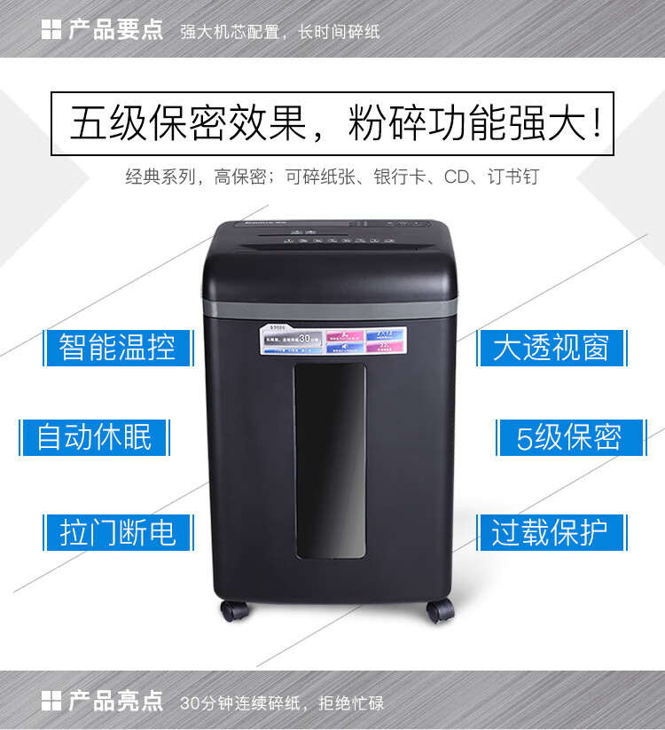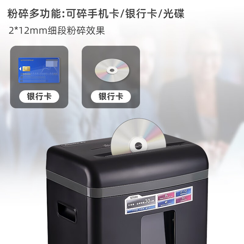 商品名称:齐心 5级保密碎纸机 办公商用家用文件粉碎机(单次8张 持续碎纸30分钟 双入口可碎纸/卡/光盘) S3508