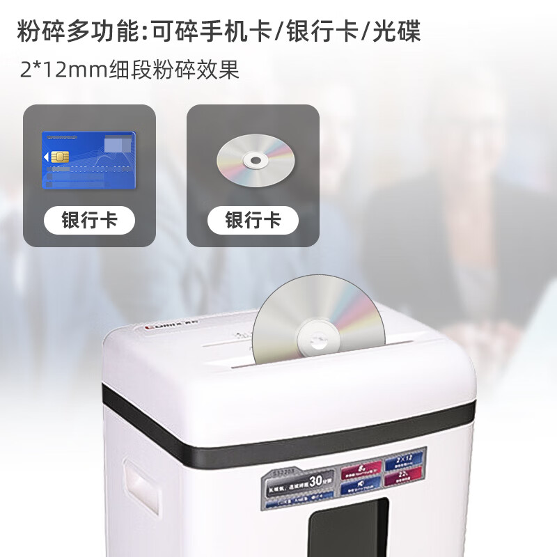 商品名称:齐心 5级保密碎纸机 办公商用家用文件粉碎机(单次8张 持续碎纸30分钟 双入口可碎纸/卡/光盘) S52208
