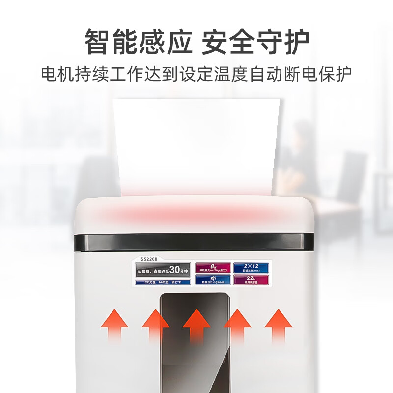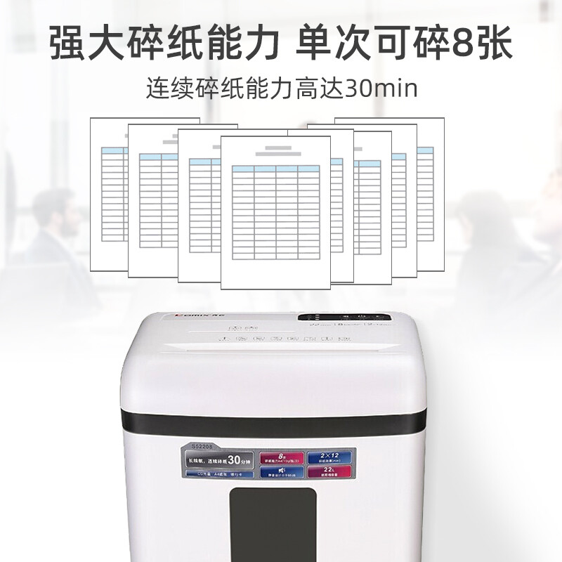 齐心 5级保密碎纸机 办公商用家用文件粉碎机(单次8张 持续碎纸30分钟 双入口可碎纸/卡/光盘) S52208