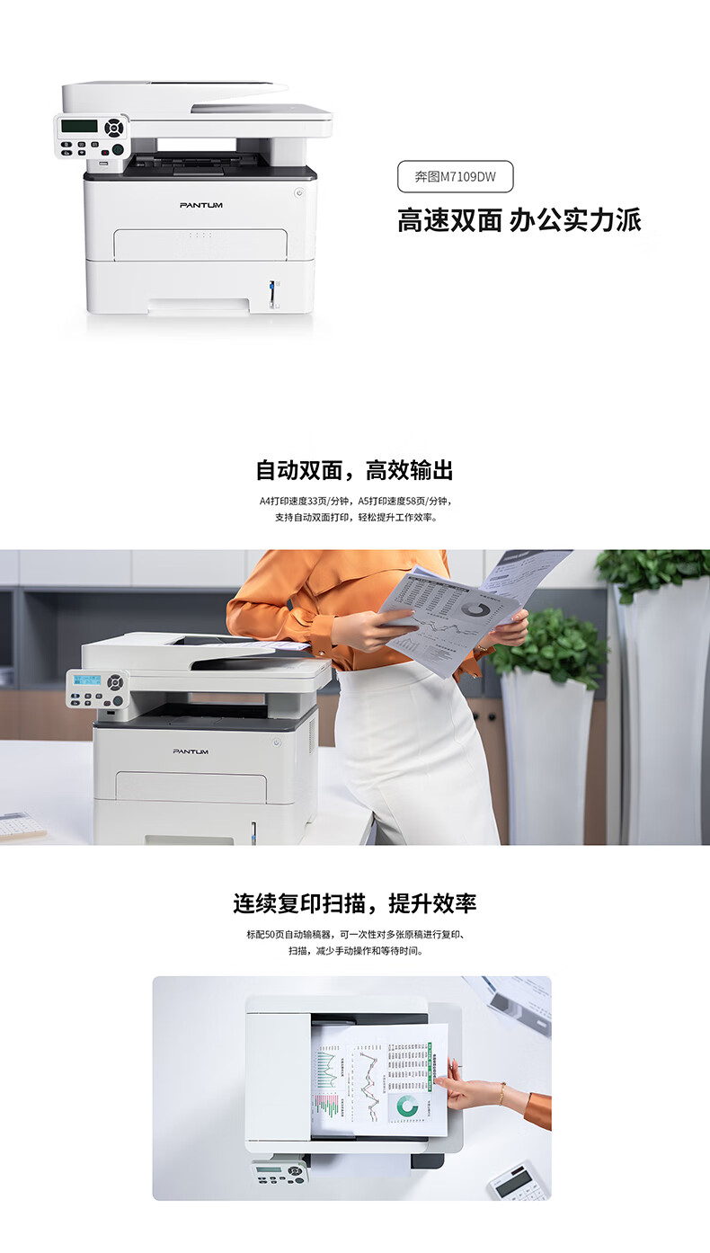 商品名称:奔图(PANTUM)M7109DW黑白激光多功能一体机(打印 复印 扫描)