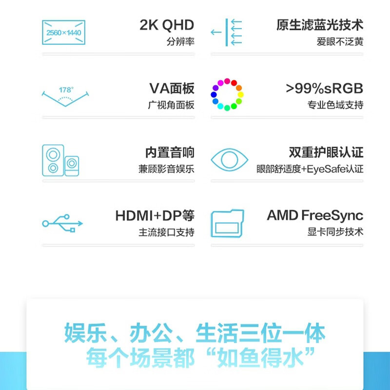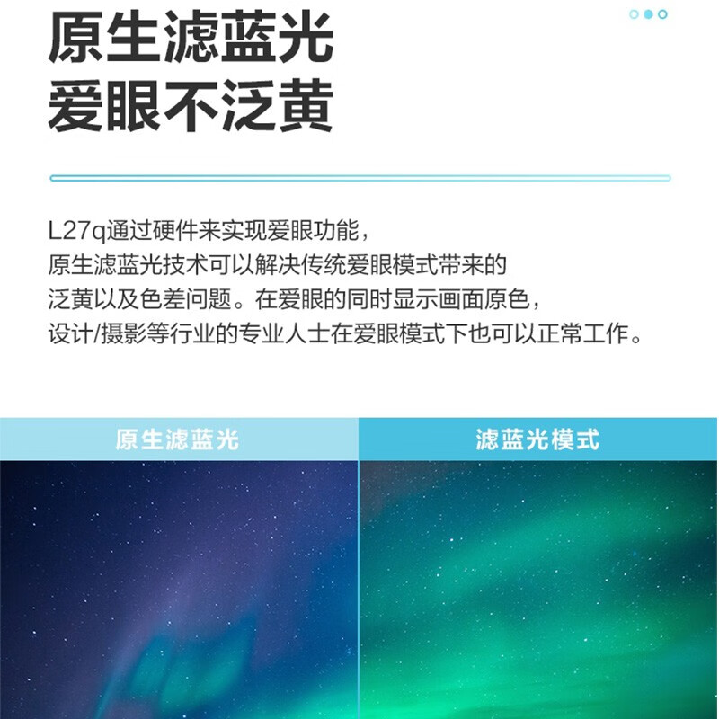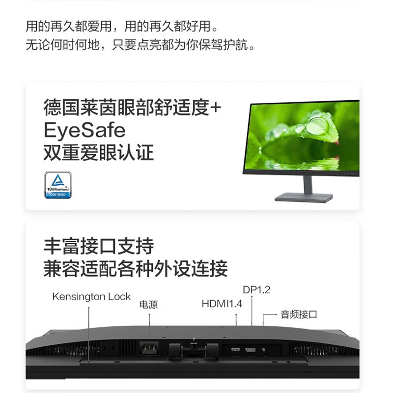 商品名称:联想(Lenovo) 电脑显示器 商务办公 家庭娱乐 纤薄机身 微边框 护眼认证 27英寸/2k/HDMI+DP L27q-35