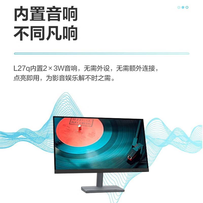 联想(Lenovo) 电脑显示器 商务办公 家庭娱乐 纤薄机身 微边框 护眼认证 27英寸/2k/HDMI+DP L27q-35