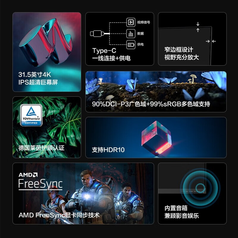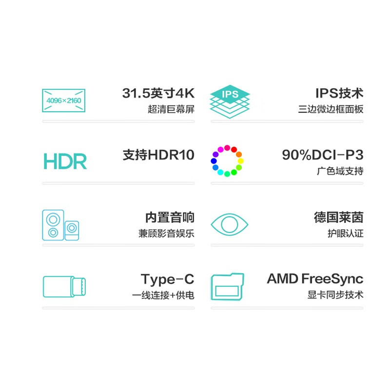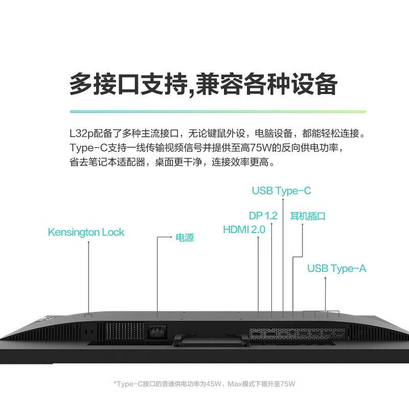商品名称:联想(Lenovo) 电脑显示器 商务办公 家庭娱乐 纤薄机身 微边框 护眼认证 31.5英寸/4k/Type-c线 L32p-30