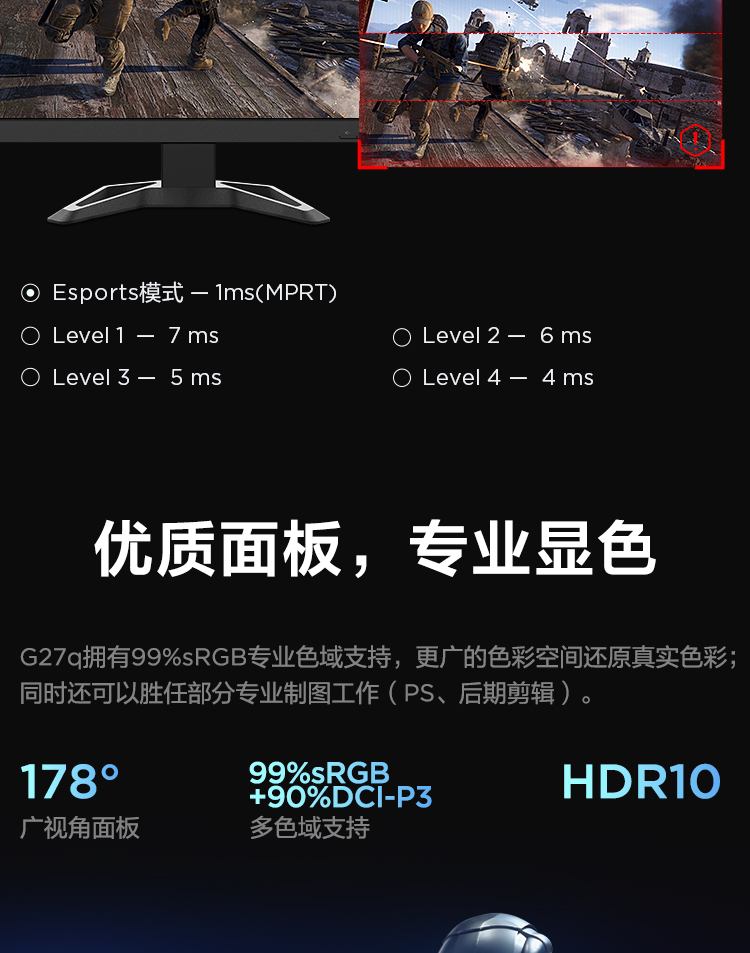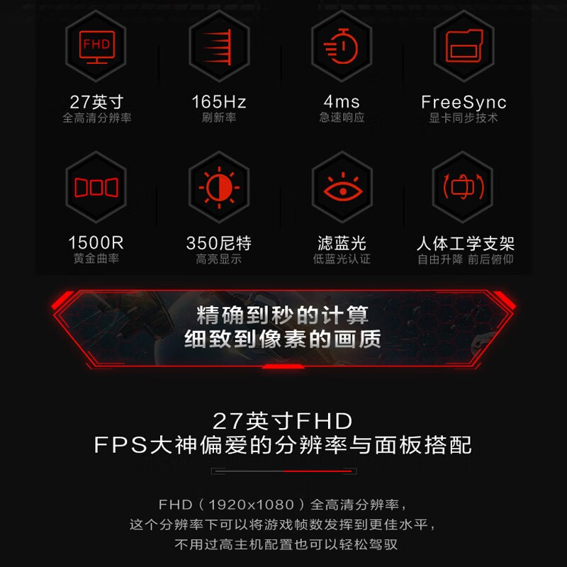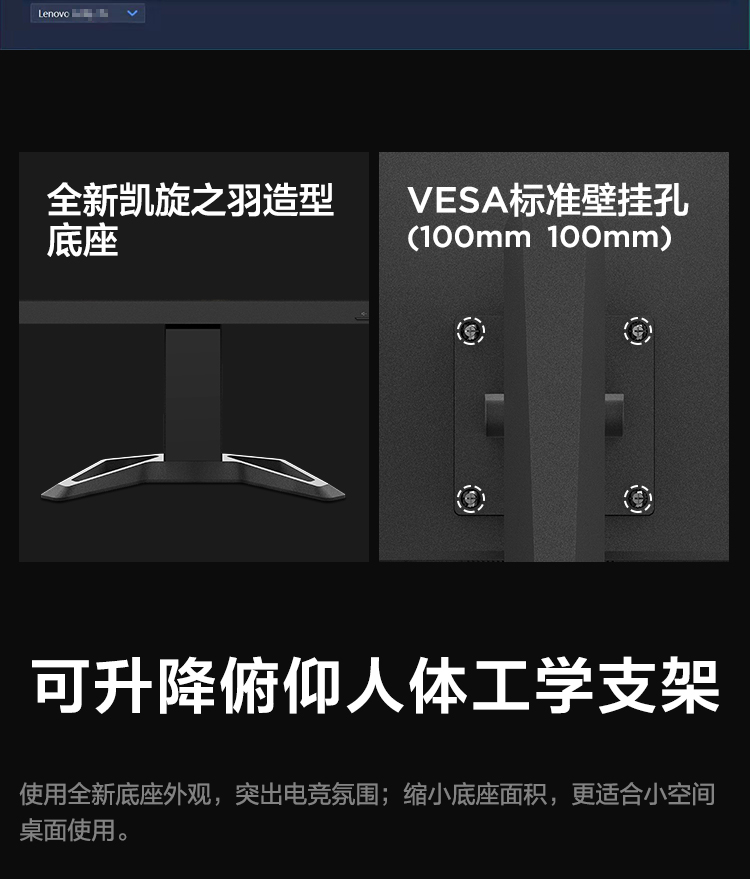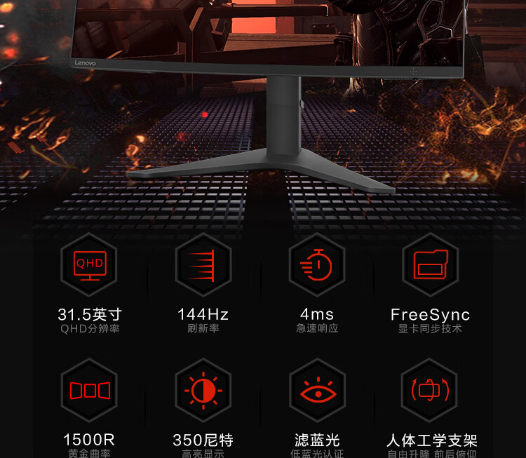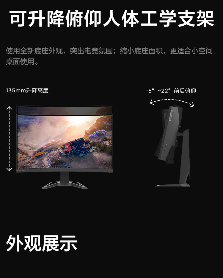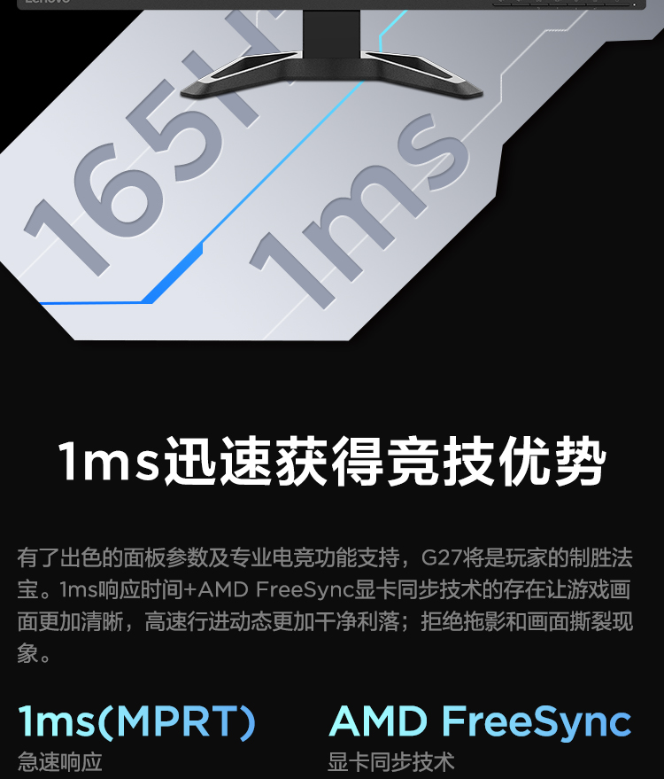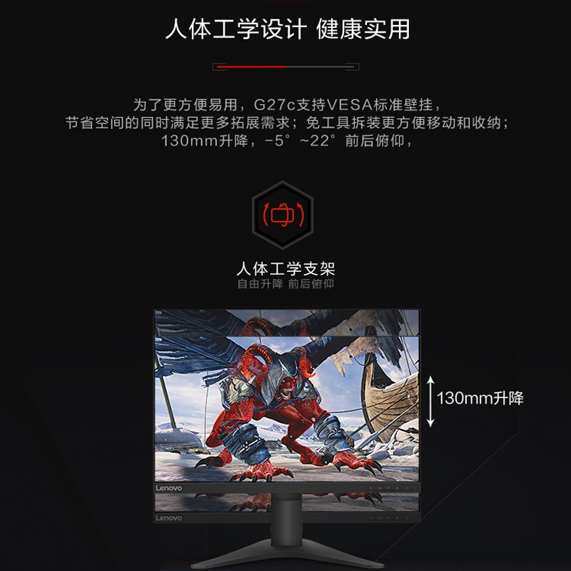 商品名称:联想(Lenovo) 拯救者游戏电竞显示器 144/165HZ直面/曲面 升降俯仰底座电竞显示屏 【曲面】27英寸/165Hz G27c-10