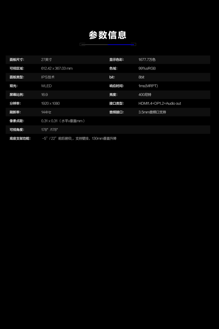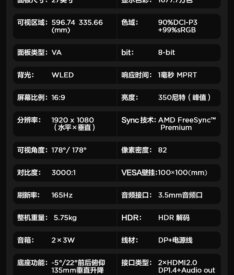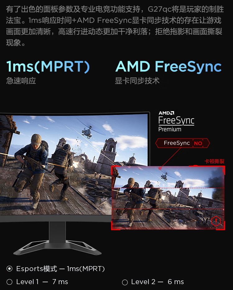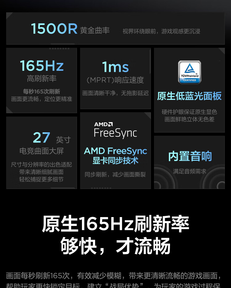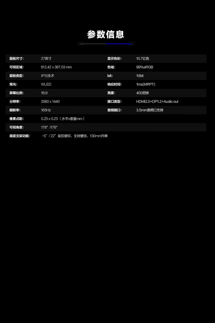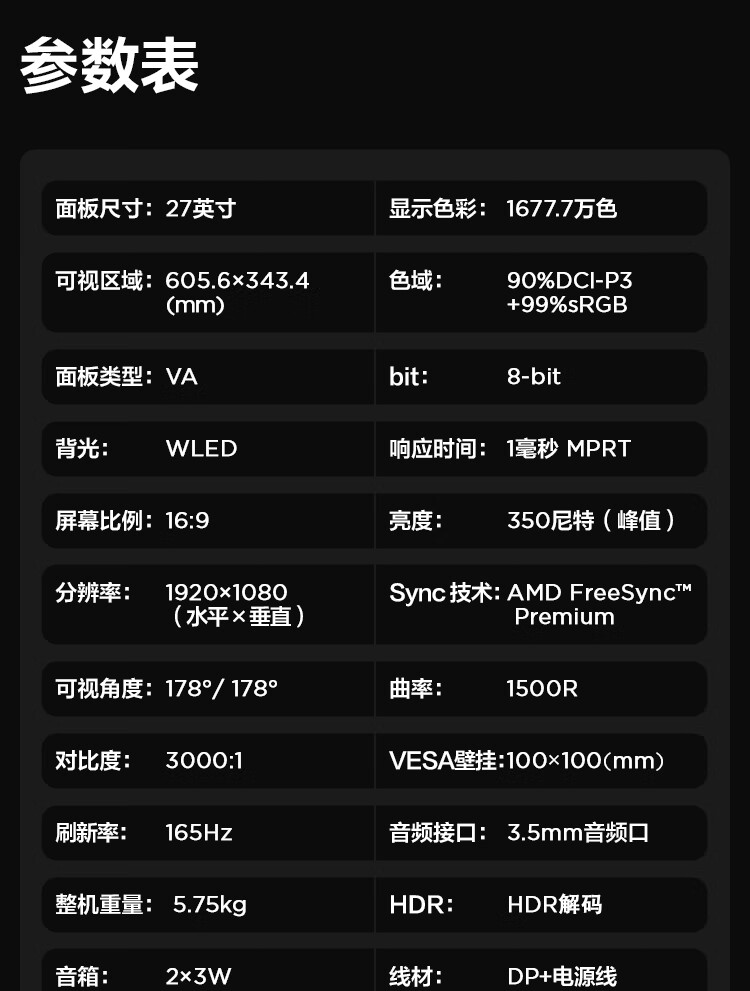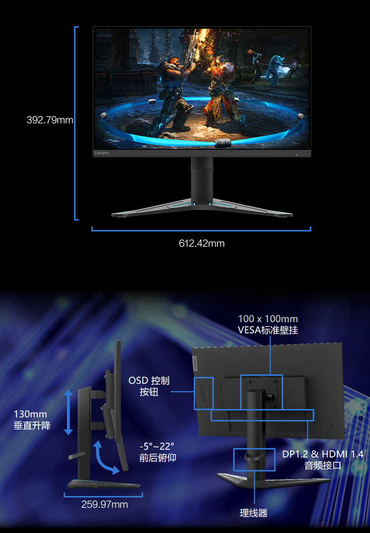 商品名称:联想(Lenovo) 拯救者游戏电竞显示器 144/165HZ直面/曲面 升降俯仰底座电竞显示屏 【曲面】27英寸/165Hz G27c-10
