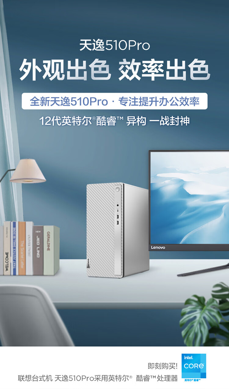 商品名称:联想(Lenovo) 天逸510Pro-14升商务办公台式机电脑主机酷睿Win11 新12代酷睿i3 8G 512G固态 单主机